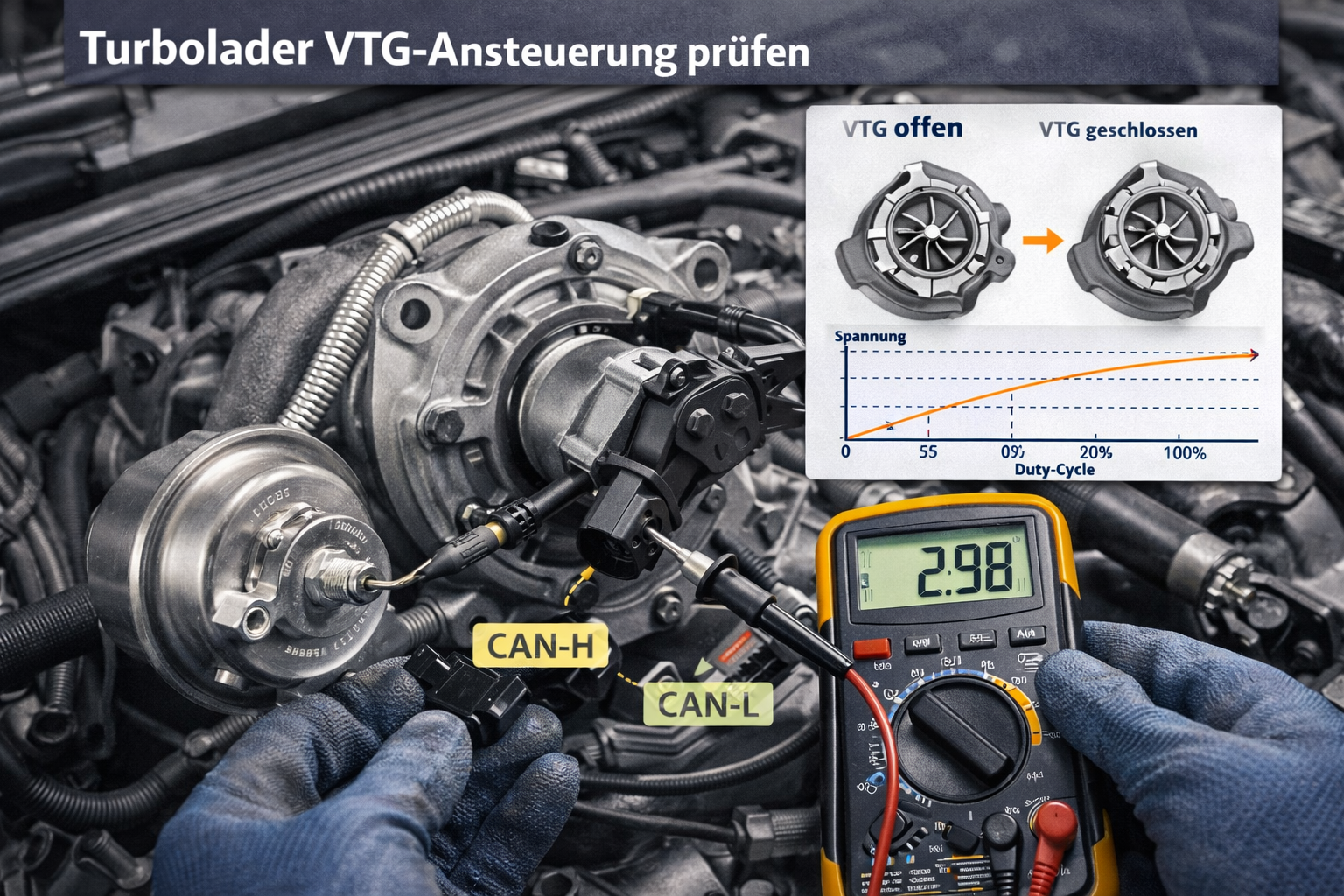 Turbolader VTG-Ansteuerung prüfen: Diagnose von Stellmotoren und Mechanik